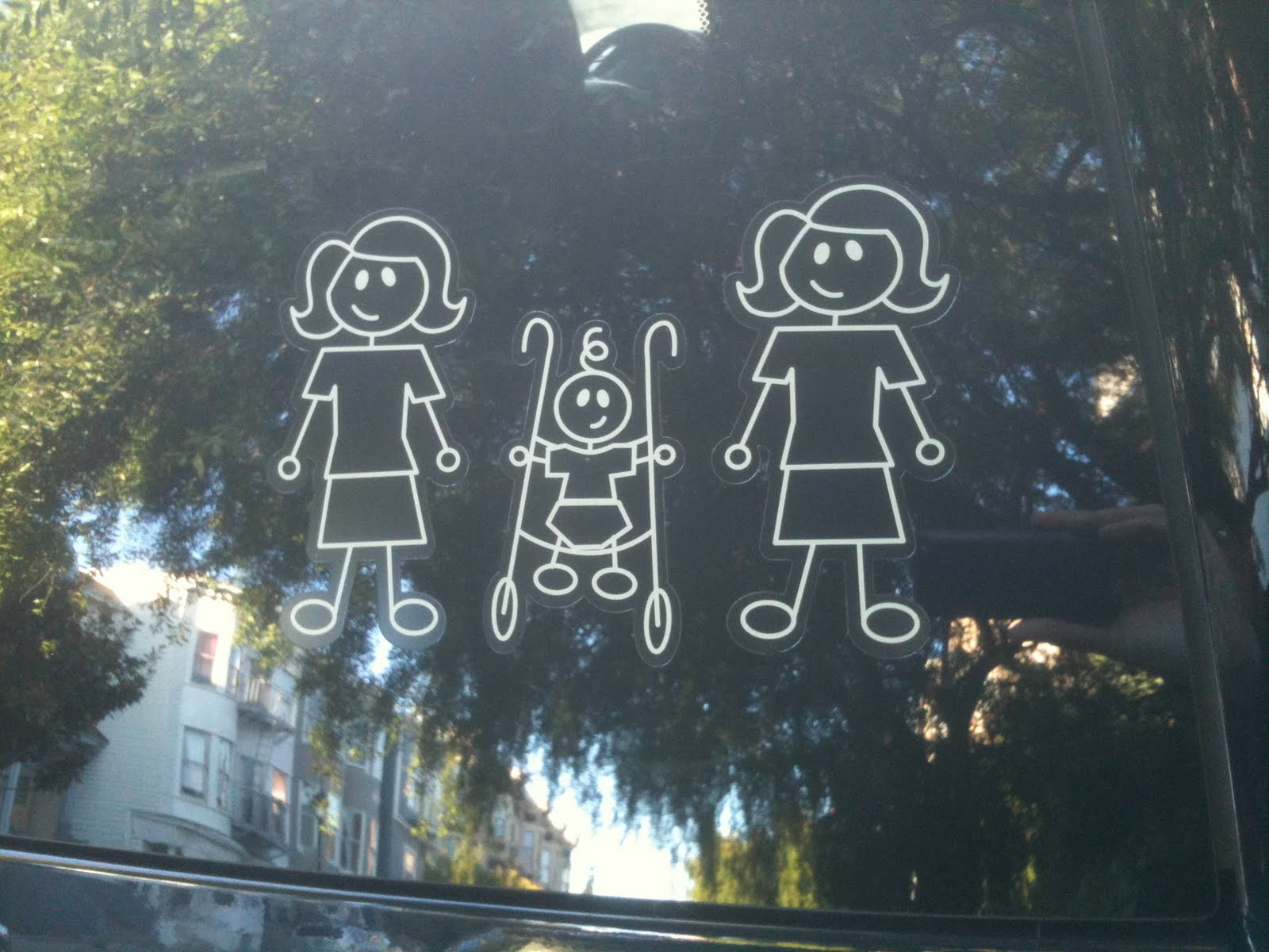 Stick baby has two mommies. Now my fears of gay assimilation through weddings and wedding culture have been trumped by a fear of hetero-sticker-schlock mimicry.
