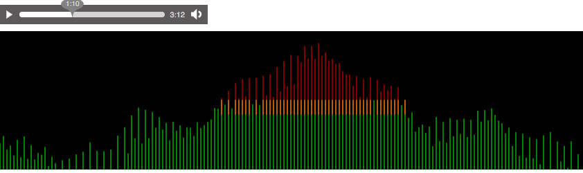 For my second attempt I really tried to understand more what the javascript functions were doing, how the actual audio data was being generated, and in what form it was being passed to the processing draw() function. I found a couple of pages on the Mozilla Developer Network that helped me understand the API a bit better. On my second attempt to visualize audio data I could really make it do what I wanted. The next round of learning I would like to do in this area is how to work with user interaction better. To respond with audio and video to user movements and key press events.